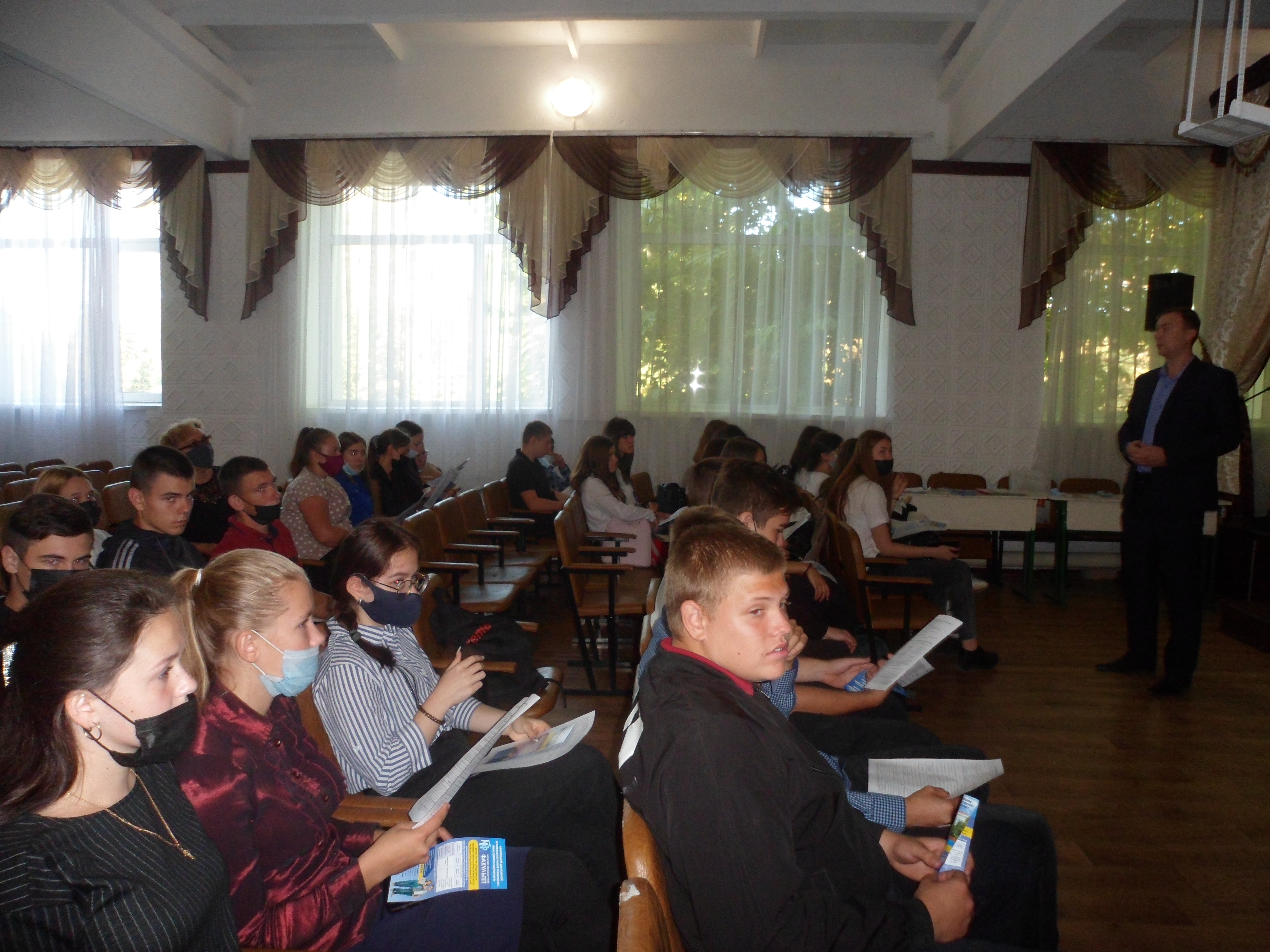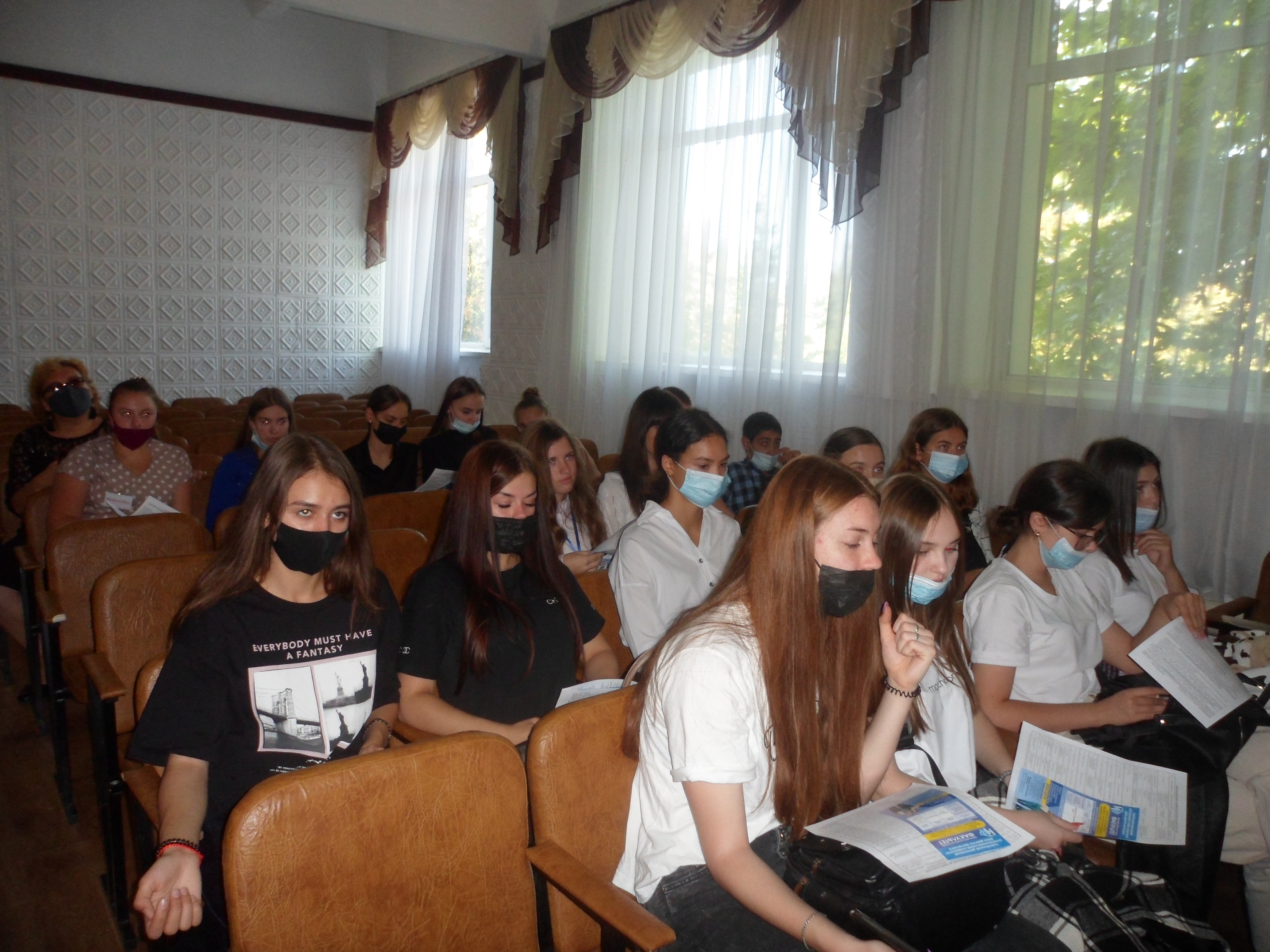 Під час зустрічі надавалася інформація про історію нашого навчального закладу, перелік спеціальностей, які є в університеті. Викладач кафедри розповіла про предмети ЗНО для вступу до вищого закладу. Особливий наголос Олена Рожкова зробила на запрошенні випускників зустрітися на День відкритих дверей у ТДАТУ.