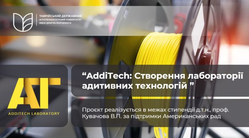 “AddiTech: Створення лабораторії адитивних технологій”  — це проєкт, що реалізується в межах д.т.н., проф. Кувачова В.П. за підтримки Американських рад (2025-2025 рр.).