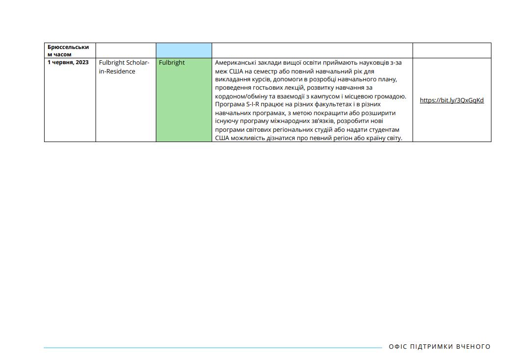 КАЛЕНДАР ПОДАНЬ ГРАНТОВИХ ЗАЯВОК ДЛЯ НАУКОВЦІВ ТА ЗАКЛАДІВ ВИЩОЇ ОСВІТИ_2023