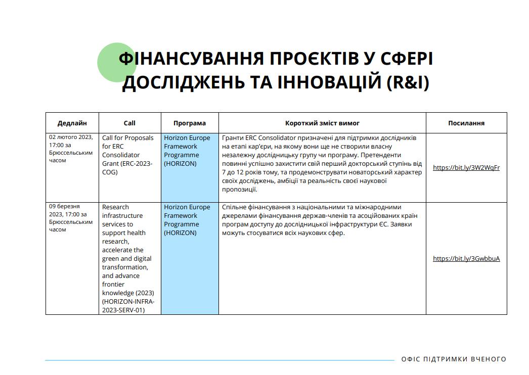 КАЛЕНДАР ПОДАНЬ ГРАНТОВИХ ЗАЯВОК ДЛЯ НАУКОВЦІВ ТА ЗАКЛАДІВ ВИЩОЇ ОСВІТИ_2023