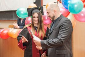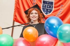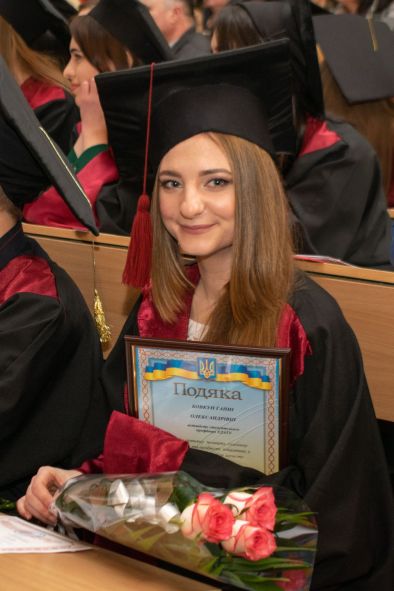 Зі словами вдячності від випускників 2019 року виступила магістр спеціальності «Маркетинг» Єлизавета Бончужна, яка протягом чотирьох років очолювала студентське профбюро університету. На таку почесну місію Єлизавета заслужила своїми успіхами у навчальній, науковій, громадській та волонтерській діяльності. У кінці свого виступу дівчина запропонувала усім присутнім переглянути найбільш цікаві моменти з життя випускників під час навчання у магістратурі.