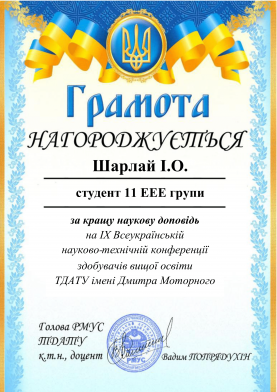 За участь у конференції всі учасники отримали сертифікати, а найкращі студенти – грамоти за активну участь у ІХ Всеукраїнській науково-технічній конференції здобувачів вищої освіти ТДАТУ.