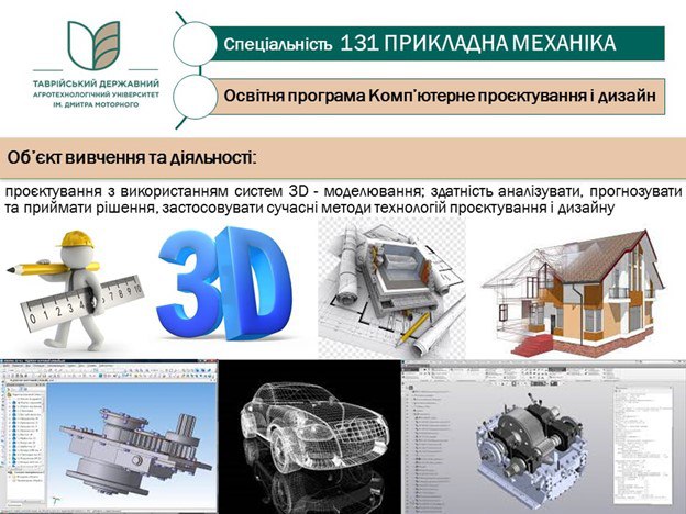 Таврійський державний агротехнологічний університет імені Дмитра Моторного запрошує абітурієнтів до світу безмежних можливостей «Комп’ютерного проектування і дизайну».