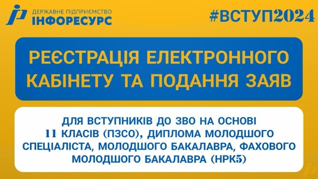 Пропонуємо вступникам відеоінструкцію щодо реєстрації електронного кабінету.