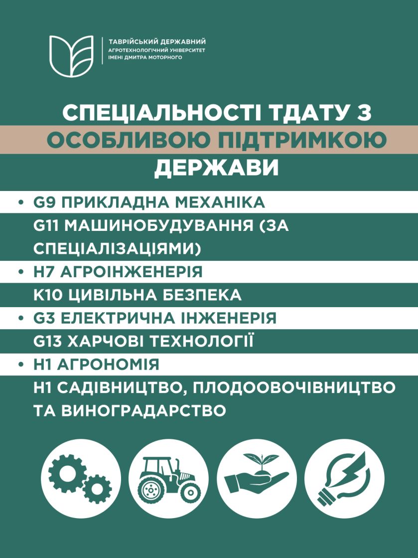 Серед них 8 спеціальностей / Освітніх програм, за якими надають освіту у ТДАТУ: