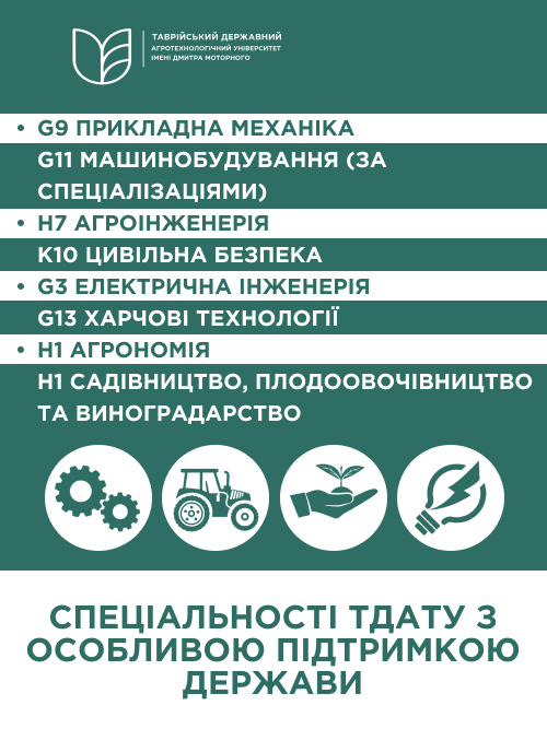 Вступ 2025. Спеціальності ТДАТУ, що мають особливу підтпримку держави