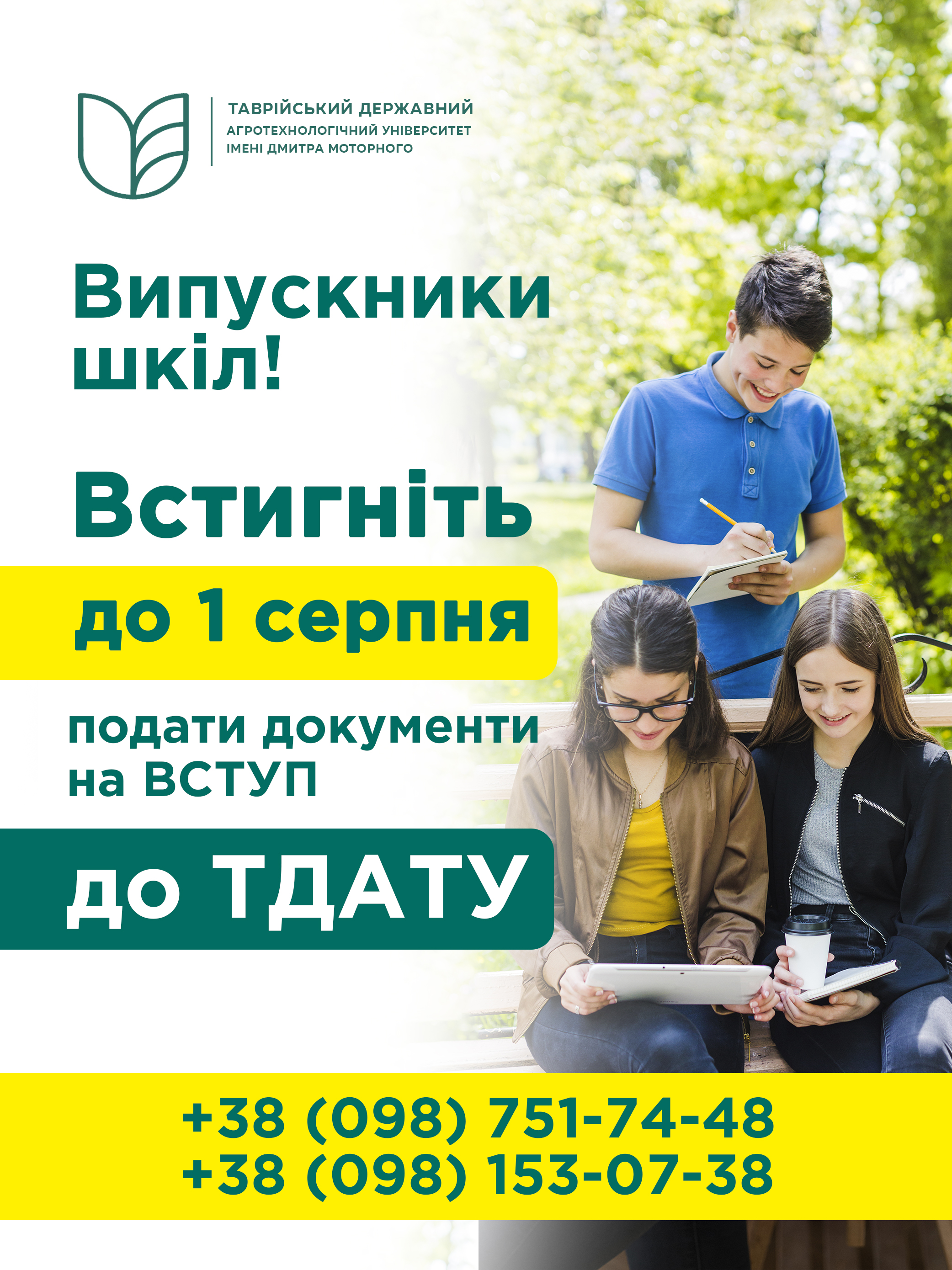 Вступ 2025. Випускники шкіл, встигніть подати документи на вступ до ТДАТУ