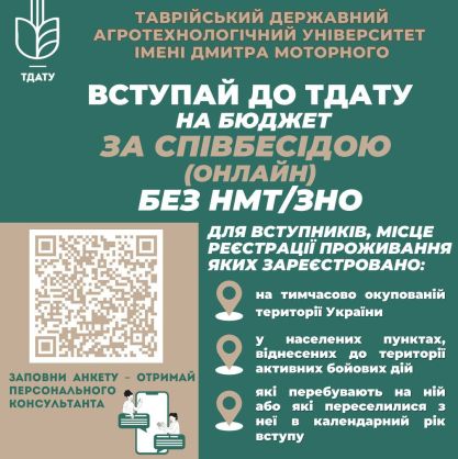 Ти можеш скористатися спеціальними умовами участі у конкурсі і вступи до ТДАТУ на освітній рівень бакалавра за СПІВБЕСІДОЮ замість НМТ/ЗНО.