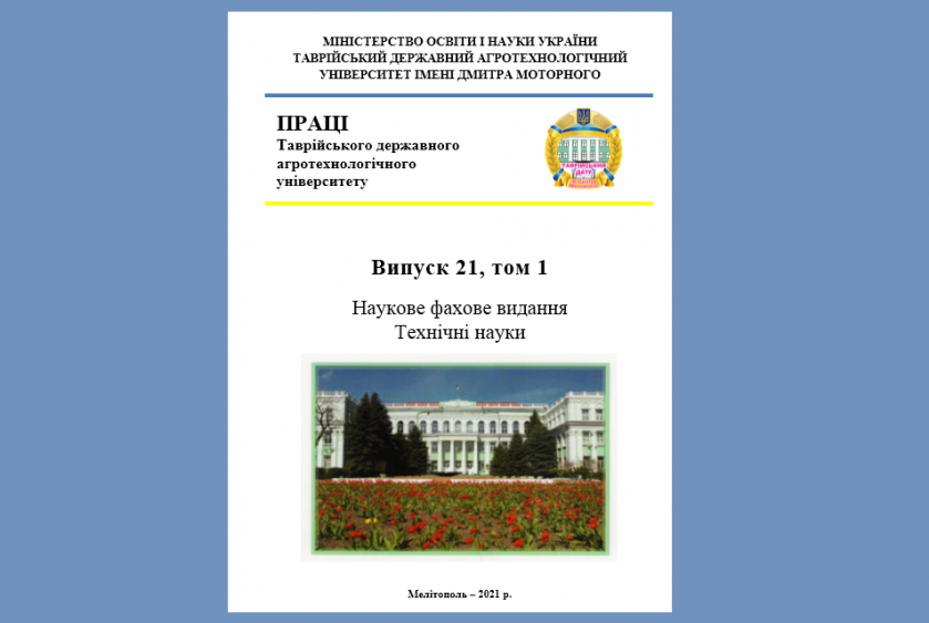 Кафедра обладнання переробних і харчових виробництв імені професора Ф.Ю. Ялпачика інформує про вихід наукового збірника «Праці ТДАТУ» Вип. 21, т. 1.