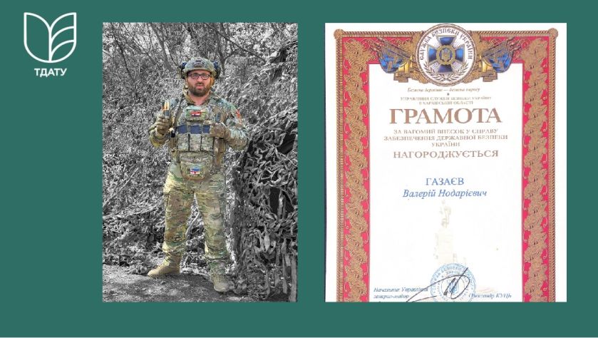 Старший викладач кафедри фізичного виховання і спорту Таврійського державного агротехнологічного університету імені Дмитра Моторного Валерій Газаєв, який тривалий час її очолював, отримав грамоту від Управління СБУ Харківської області.