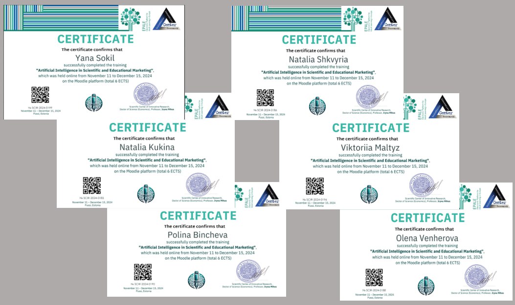 Викладачі кафедри маркетингу успішно завершили навчальний курс “Artificial Intelligence in Scientific and Educational Marketing” (Pussi, Estonia)