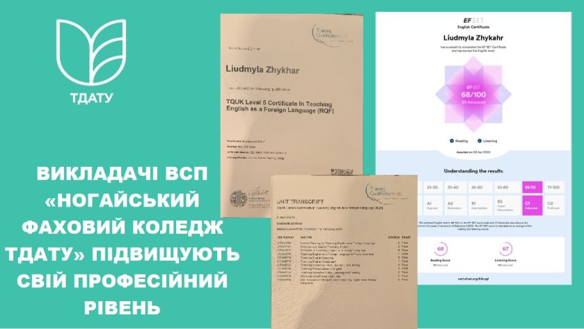 Викладачі ВСП «Ногайський фаховий коледж ТДАТУ» постійно підвищують кваліфікацію.