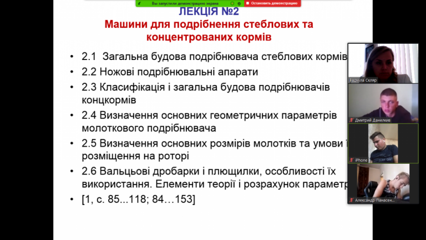 Зокрема, сервіс Zoom використовується ведучим викладачем доцентом кафедри ТСС АПК Радмілою Скляр для навчання здобувачів вищої освіти 4 курсу зі спеціальності «Агроінженерія» з дисципліни «Машини, обладнання та їх використання в тваринництві» при проведенні лекцій і консультацій.