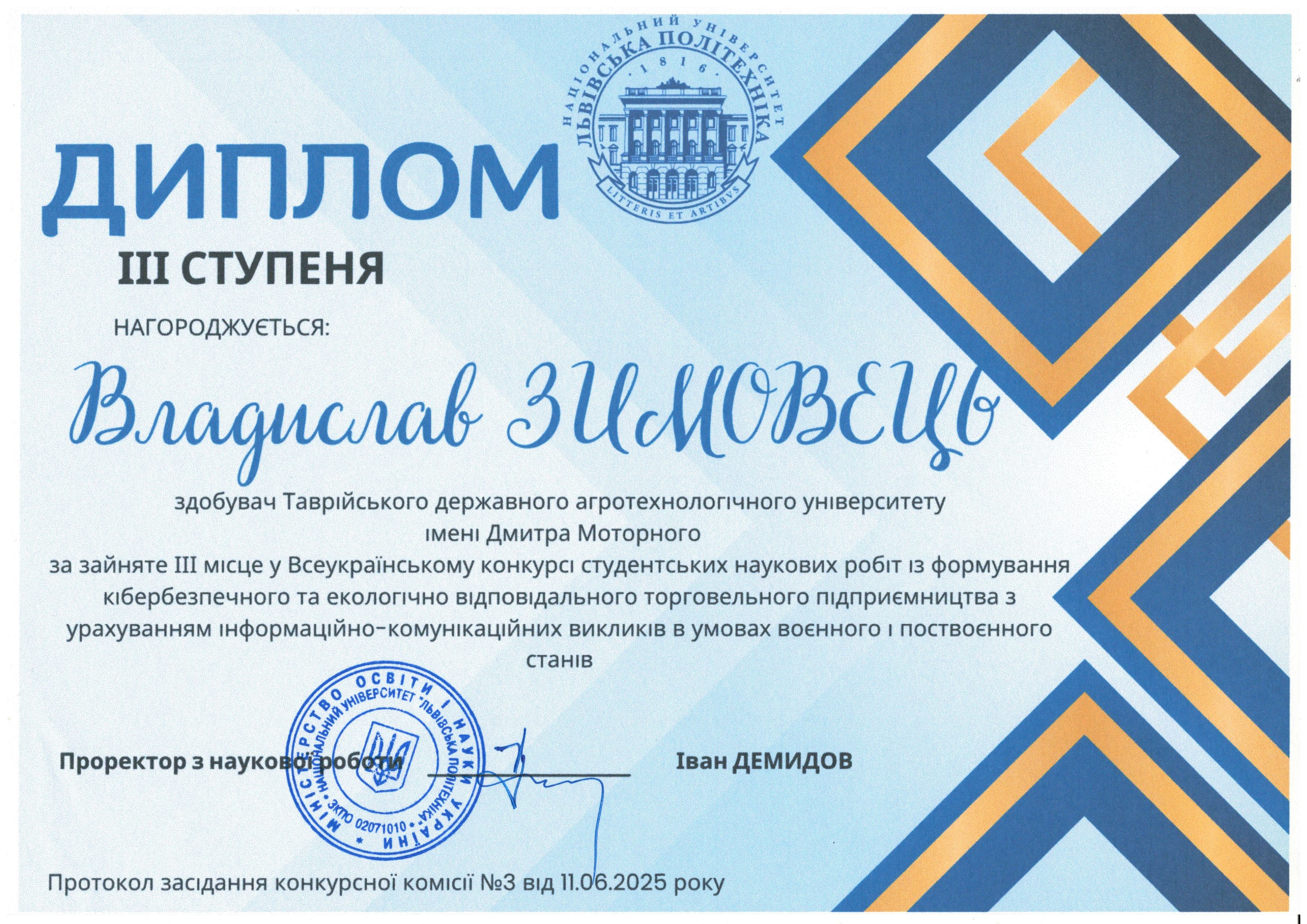 Визнання на всеукраїнському рівні: третє місце у конкурсі студентських наукових робіт – за ТДАТУ