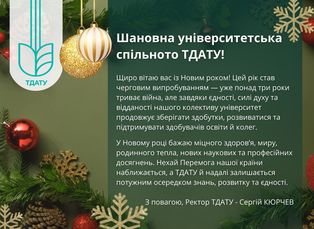 Новий 2026 рік — продовження шляху розвитку та стійкості ТДАТУ