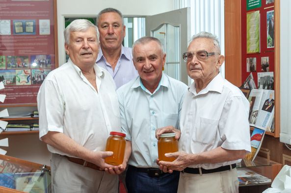 Голова ради ветеранів ТДАТУ Віктор Петров від імені адміністрації та профкому ТДАТУ привітав шановних гостей та подарував мед з власної пасіки Університету. Також мед відвезли додому і Володимиру Михайловичу Сидоренку, якому у його 96 років важко завітати до університету.