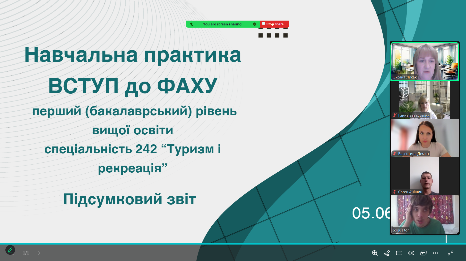 Захист звітів з навчальної практики «Вступ до фаху» здобувачів спеціальності «Туризм і рекреація»