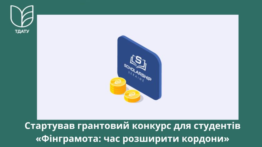 Шановні здобувачі ТДАТУ! Scholarship в Україні запрошує вас взяти участь у конкурсі «Фінграмота: час розширити кордони» та отримати фінансову підтримку на навчання.