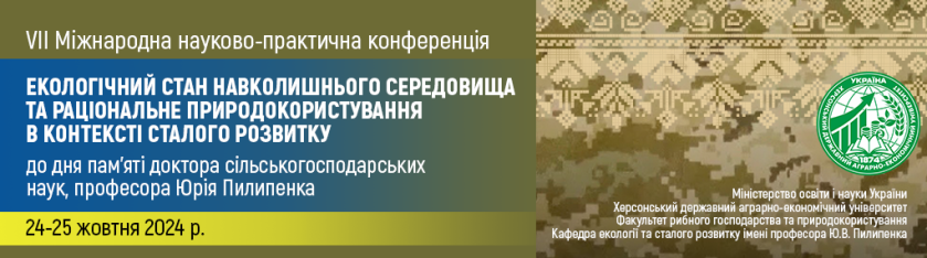 Запрошуємо до участі в VІІ Міжнародній науково-практичній конференції «Екологічний стан навколишнього середовища та раціональне природокористування в контексті сталого розвитку», яка відбудеться 24–25 жовтня 2024 року у Херсонському державному аграрно-економічному університеті.