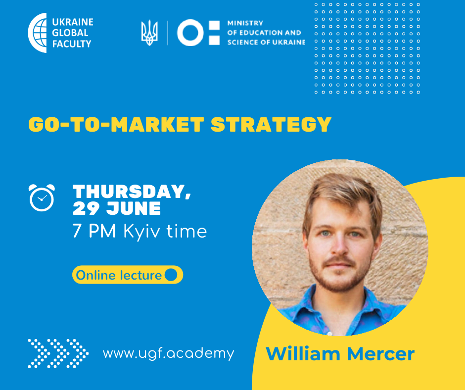 Запрошуємо до участі в онлайн лекції директора з питань інвестицій та менторської підтримки у eō Business Incubators William Mercer «Go-to-market strategy»