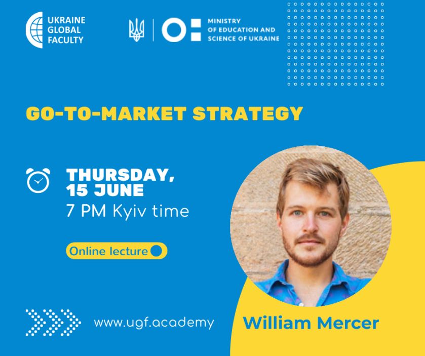 Пропонуємо зареєструватися на онлайн лекцію венчурного партнера у Zag, директора з питань інвестицій та менторської підтримки у eō Business Incubators William Mercer «Go–to–market strategy».