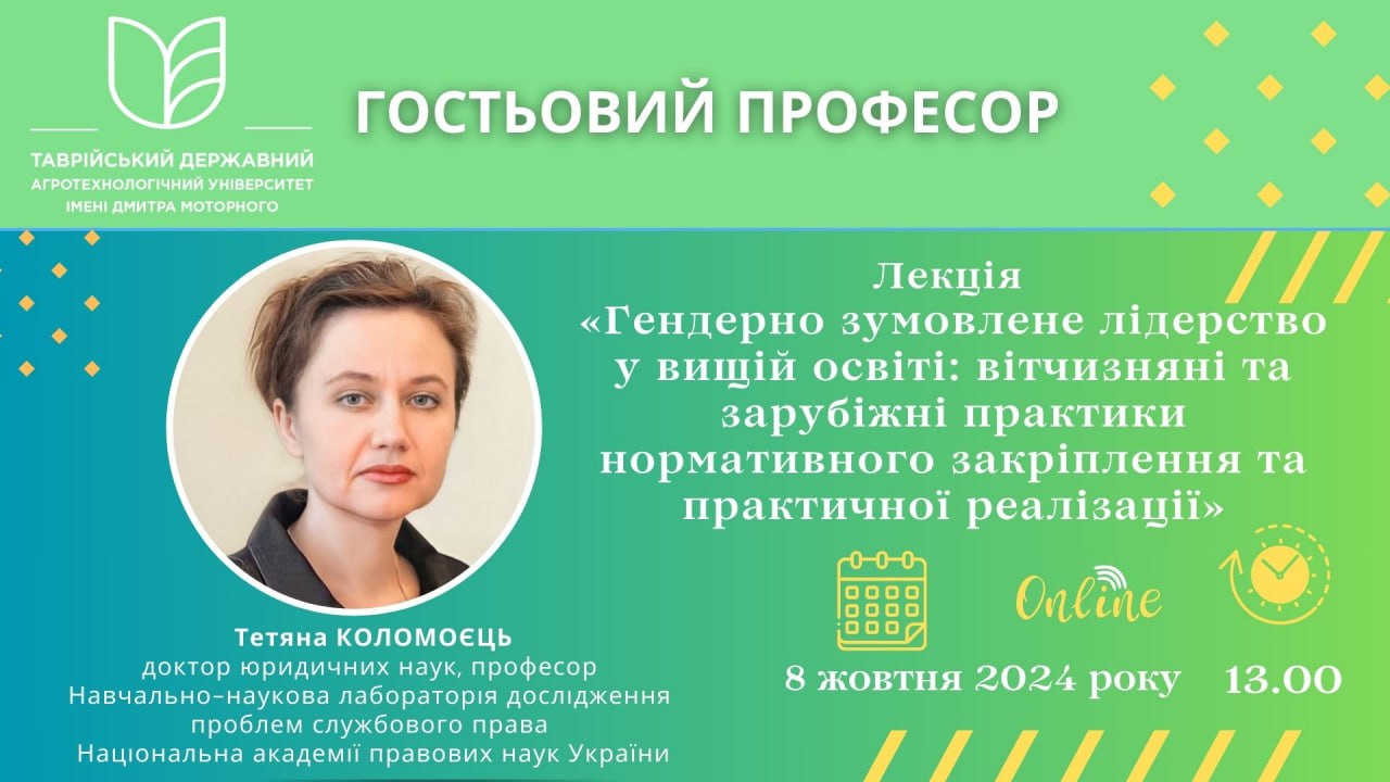 Запрошуємо на гостьову лекцію “Гендерно зумовлене лідерство у вищій освіті: вітчізняні та зарубіжні практики нормативного закріплення та практичної реалізації”