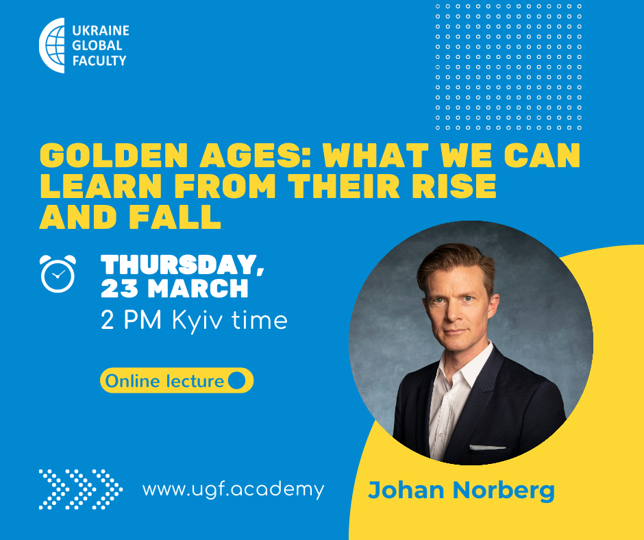 Запрошуємо на лекцію від старшого наукового співробітника Інституту Катона (Вашингтон) та Європейського центру міжнародної політичної економії (Брюссель) Johan Norberg «Golden ages: What we can learn from their rise and fall»