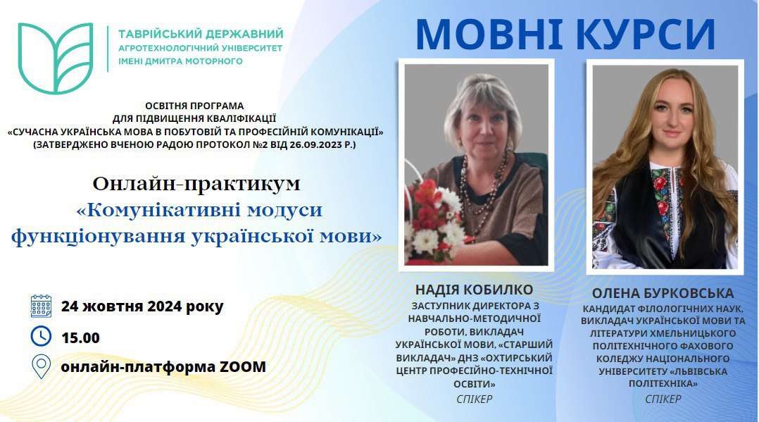 Запрошуємо на мовний курс за освітньою програмою підвищення кваліфікації «Сучасна українська мова в побутовій та професійній комунікації»