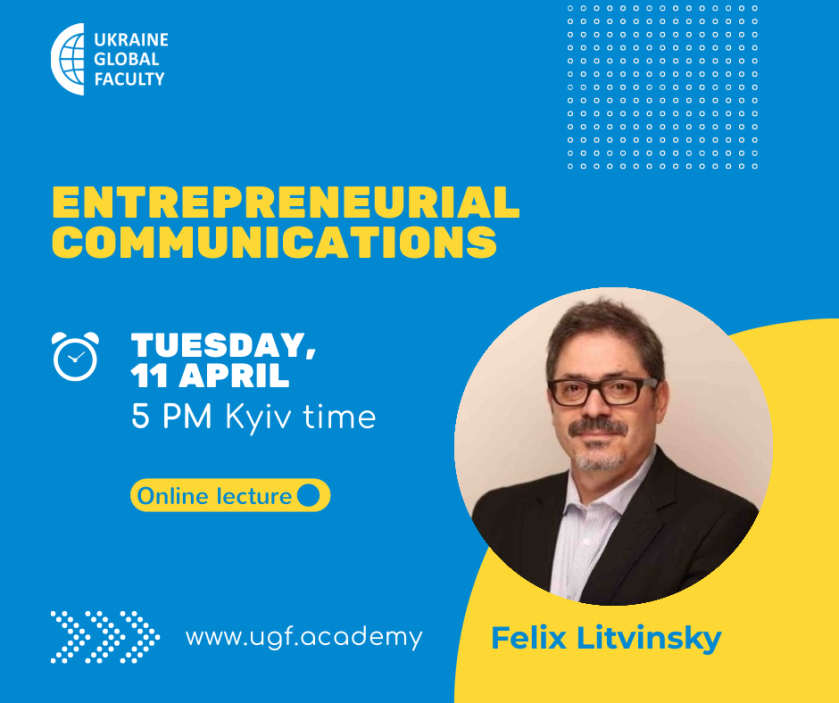 Міжнародна освітня платформа Ukraine Global Faculty проведе онлайн лекцію керуючого директора Blackstone LaunchPad в Корнельському університеті, PhD Felix Litvinsky «Entrepreneurial Communications».