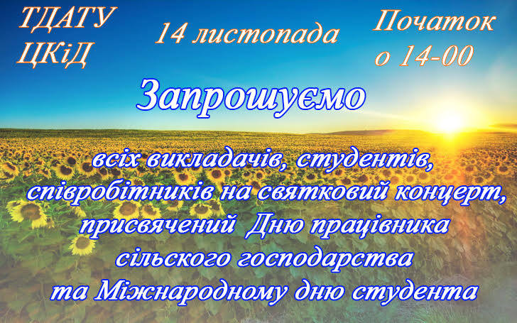 Запрошуємо на святковий концерт присвячений Дню працівника сільського господарства та Міжнародному дню студента