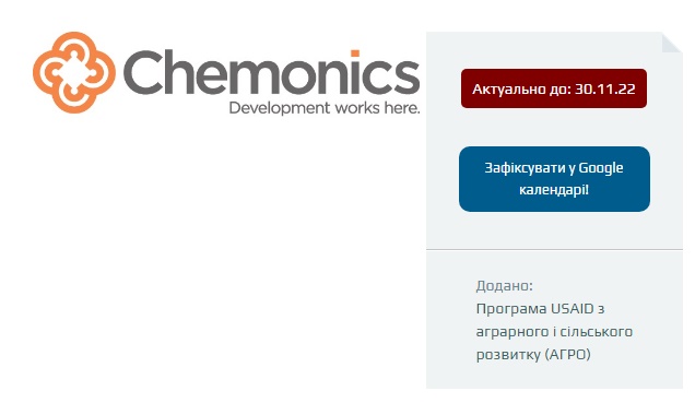 Довідково: Програма USAID з аграрного і сільського розвитку (АГРО) – це 7-річний проект (2019-2026), що фінансується Агентством США з міжнародного розвитку (USAID) та реалізується компанією «Кімонікс Інтернешнл». Метою Проекту АГРО є прискорення економічного розвитку сільських громад в Україні, які потребують найбільшої підтримки шляхом покращення управління в аграрному секторі, що сприятиме розвитку більш продуктивних, сучасних та прибуткових мікро-, малих та середніх сільськогосподарських підприємств (ММСП), які успішно інтегруються в конкурентоспроможні українські та міжнародні ринки.