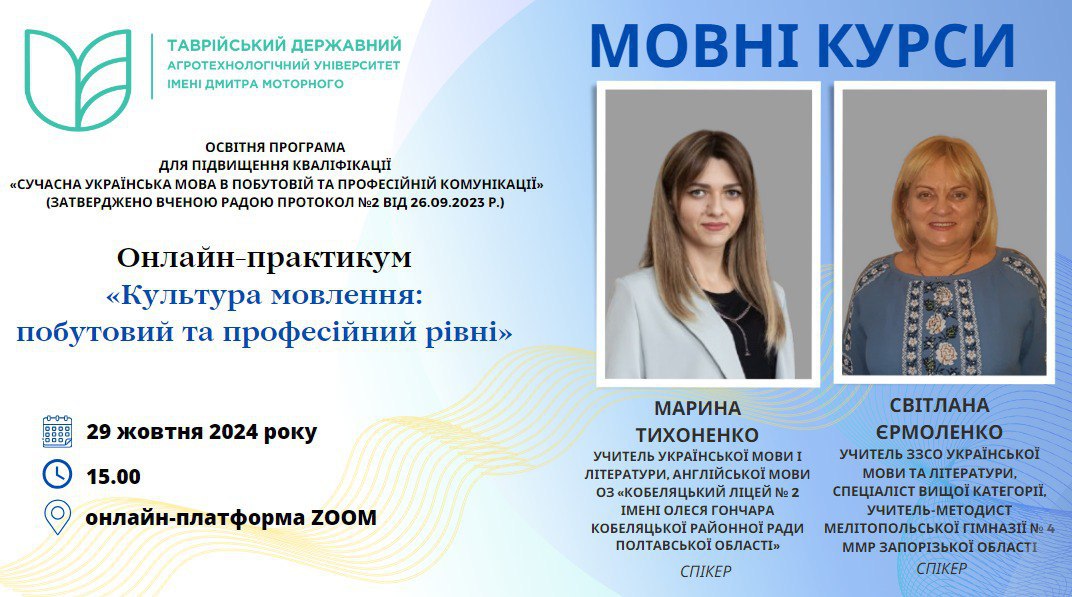Запрошуємо здобувачів освіти на мовний курс за освітньою програмою підвищення кваліфікації «Сучасна українська мова в побутовій та професійній комунікації»
