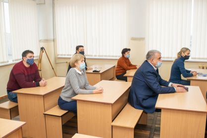 9 грудня відбулось засідання кафедри геоекології і землеустрою, на якому крім співробітників були присутні: начальник Науково-методичного центру, доцент Наталя Болтянська, завідувачка відділу моніторингу якості освітньої діяльності університету, доцент Радміла Скляр та Віце-президент ГС «ГІС-Асоціація України» Олексій Черненко.