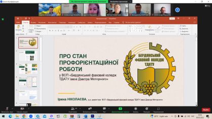 Директори відокремлених структурних підрозділів доповідали про стан профорієнтаційної роботи в коледжах ТДАТУ. Зараз це пріоритетний напрям роботи в усіх закладах освіти. Коледжі активно і потужно проводять профорієнтаційну роботу, адже від цього залежить результат вступної кампанії. У кожного коледжу ТДАТУ вже є потенційні вступники, які готові продовжити навчання саме у ВСП ТДАТУ.