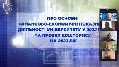 Головний бухгалтер ТДАТУ Олена Мєшкова доповіла про основні фінансово-економічні показники діяльності університету у 2022 році та проєкт кошторису на 2023 рік. Вона детально зупинилася на основних статтях витрат: виплати заробітної плати, стипендій, оплату комунальних послуг тощо. Рік, що минув, був найскладнішим в історії університету за роки Незалежної України. В умовах повномасштабної війни бюджет університету було скорочено. Тим не менш, 2022 рік ТДАТУ функціонував без заборгованостей, виконуючи усі фінансові зобов’язання. Всі співробітники вчасно отримували заробітну плату, студенти – стипендії. Не було боргів і по іншим статтям витрат.