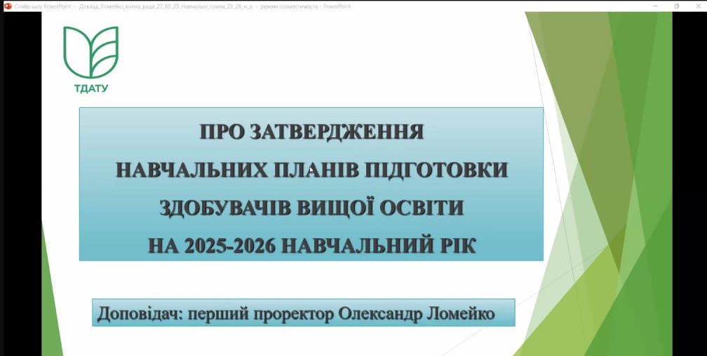 Засідання Вченої ради університету: навчальні плани підготовки здобувачів, профорієнтаційна роботи у ВСП, реалізація Програми розвитку української мови в ТДАТУ