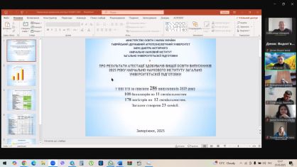 Декани факультетів та керівник ННІ загальноуніверситетської підготовки ТДАТУ доповіли про підсумки атестації здобувачів вищої освіти. Не зважаючи на повномасштабну війну та постійні обстріли, освітній процес в університеті не припиняється та відбувається у змішаному форматі. Всього у лютому проходили атестацію 570 здобувачів вищої освіти. Показники успішності та якість знань у студентів виявилася на достатньо високому рівні. Багато здобувачів отримали дипломи з відзнакою.