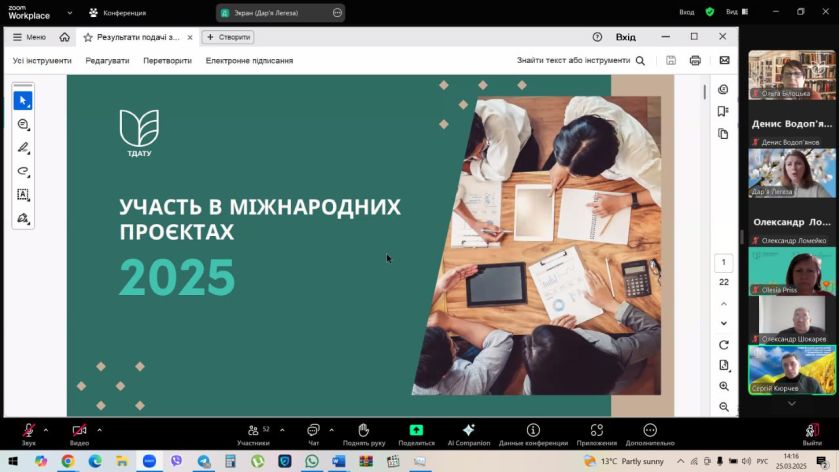 Проректор з НПР та МД Дарʼя Легеза доповідала про результати підготовки заявок на міжнародні проєкти з Erasmus у 2025 році. Вона проаналізувала 19 заявок, які подавали науковці університету впродовж року. Вони стосувались тематики цифрової освіти, EKO-STEM для сталого майбутнього, впровадження травмочутливого навчання тощо.