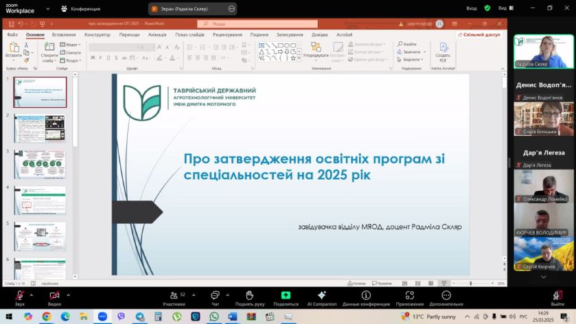 25 березня у Таврійському державному агротехнологічному університеті імені Дмитра Моторного відбулось плановане засідання Вченої ради. Воно проходило у дистанційному форматі під керівництвом голови Вченої ради, ректора Сергія Кюрчева.