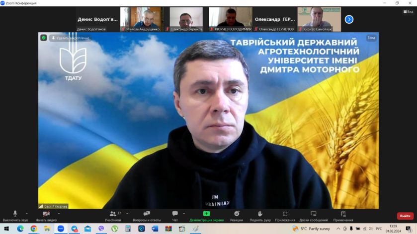 Першого лютого у Таврійському державному агротехнологічному університеті імені Дмитра Моторного відбулось перше у 2024 році засідання Вченої ради. Воно проходило у дистанційному форматі під керівництвом голови Вченої ради, ректора Сергія Кюрчева.