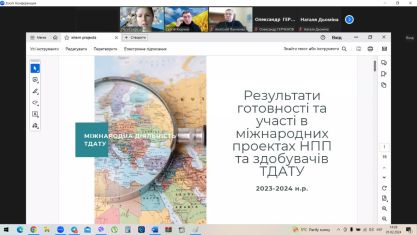 - Результати готовності та участі в міжнародних проєктах НПП та здобувачів ТДАТУ;