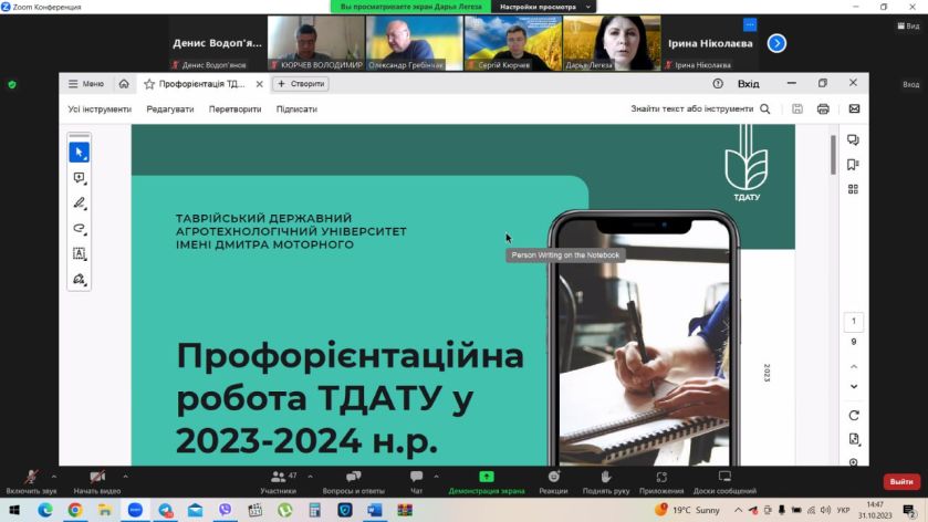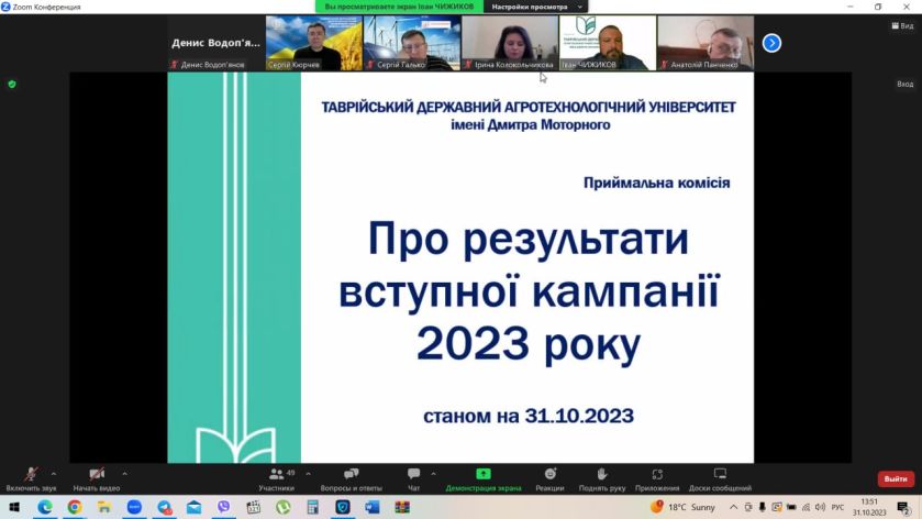 - Про результати вступної кампанії в університеті у 2023 році та план профорієнтаційної роботи ТДАТУ на 2023-2024р.