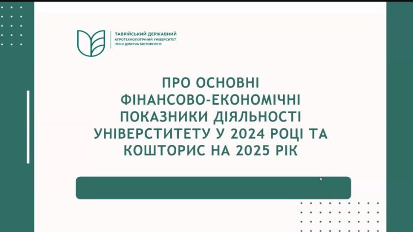 Головний бухгалтер університету Олена Мєшкова доповідала про основні фінансово-економічні показники діяльності університету у 2024 році. Вона детально зупинилася на основних статтях витрат: виплати заробітної плати, стипендій, оплату комунальних послуг тощо. У 2024 році ТДАТУ функціонував без заборгованостей, виконуючи усі фінансові зобов’язання. Всі співробітники вчасно отримували заробітну плату, студенти – стипендії. Не було боргів і по іншим статтям витрат.