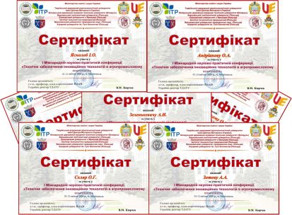 - Новації у технічному сервісі машин та обладнання агропромислового комплексу. Сертифікат