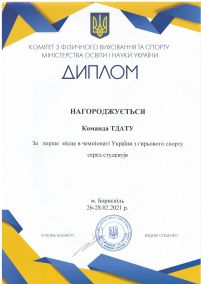 Як вже стало доброю традицією, збірна команда ТДАТУ на чолі зі своїм незмінним наставником, заслуженим тренером України з гирьового спорту і старшим викладачем кафедри фізичного виховання і спорту Кубраком Сергієм Івановичем взяла участь в Чемпіонаті України та знову довела всій спортивній громадськості, що хлопці та дівчата з ТДАТУ є найкращими та найсильнішими гирьовиками в Україні. Продемонструвавши майстерність, силу духу і волю до перемоги, наша збірна посіла почесне перше місце, отримала довгоочікувані золоті нагороди командної першості, випередивши спортсменів з Івано-Франківського національного медичного університету (ІІ місце) та команду з Київського національного університету ім. Тараса Шевченка (ІІІ місце).