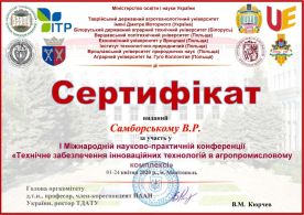 Таким чином, на I Міжнародній науково-практичній конференції «Технічне забезпечення інноваційних технологій в агропромисловому комплексі», студентами було оприлюднено 3 доповіді: