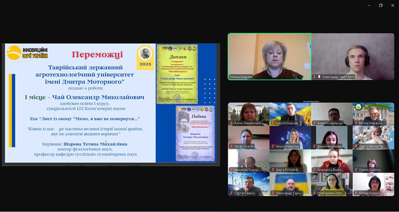 Днями у Таврійському державному агротехнологічному університеті імені Дмитра Моторного відбулося урочисте нагородження здобувачів освіти університету та його структурних підрозділів – переможців Міжнародного конкурсу есе учнівської та студентської молоді «Мій Шевченко». Засновником конкурсу є Громадська організація «Інноваційні обрії України», з якою ТДАТУ співпрацює вже багато років.