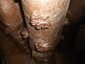 Але найголовнішим етапом екскурсії було саме місце вирощування грибів. Велике приміщення займали розвішені у ряди мішки з сировиною та вирізаними отворами. І ось саме з них і росли гливи. Будівля має особливе розташування, що дозволяє у будь-який час спіймати вітер та за допомогою природи створювати протяги, заповнюючи приміщення необхідною кількістю чистого повітря. Таке розташування дає змогу зекономити та зменшити собівартість продукції.