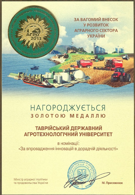Золото ТДАТУ на Міжнародній виставці-ярмарку «АГРО – 2013»!