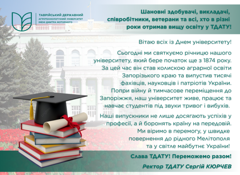 Вітання ректора ТДАТУ з нагоди Дня університету!